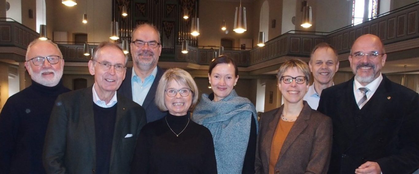 v.l.n.r.: Prof. Dr. Joe Schmitt (Schatzmeister), Otto Schätzel (Beisitzer), Pfarrer Michael Graebsch (Beisitzer), Barbara Schmitt (Erste Vorsitzende), Dr. Katrin Bibiella (Beisitzerin), Alexandra Behrendt (Schriftführerin), Jochen Schmitt (Beisitzer), Henning Krey (Zweiter Vorsitzender)